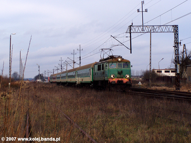 - Świdwin, EU07-337 powoli wtacza się na stację.