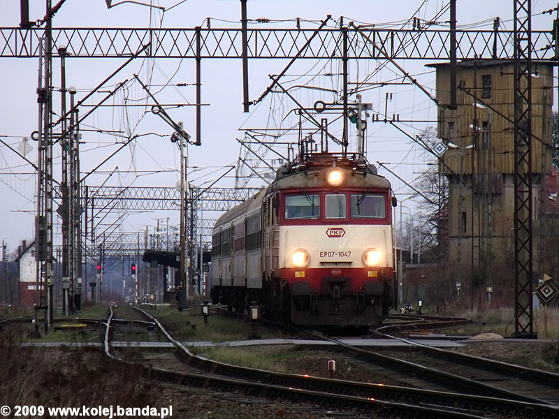 - Świdwin. EP07-1047 z pociągiem pospiesznym "Bryza" z Olsztyna do Szczecina opuszcza stację.