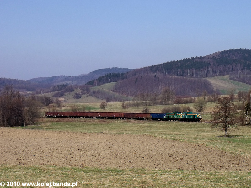 - Kaczorów. SM42-1107 i SM42-277 ze zdawką do Marciszowa zbliżają się do Płoniny.