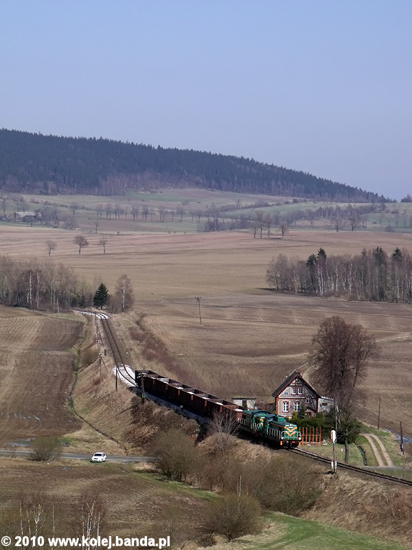 - Marciszów. SM42-1107 i SM42-277 z pociągiem towarowym z Wojcieszowa zbliżają się do stacji.