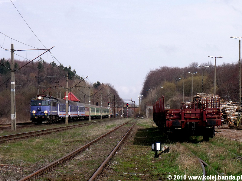 - Skibno. EU07-215 z pociągiem TLK z Krakowa do Kołobrzegu pędzi do Koszalina.
