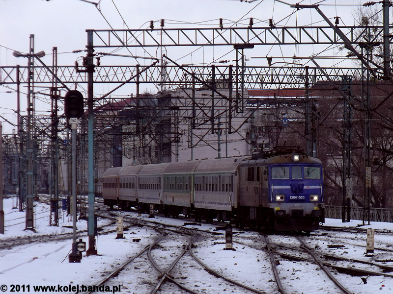 - Wrocław Główny. EU07-520 z pociągiem TLK relacji Szczecin-Przemyśl wjeżdża na stację.