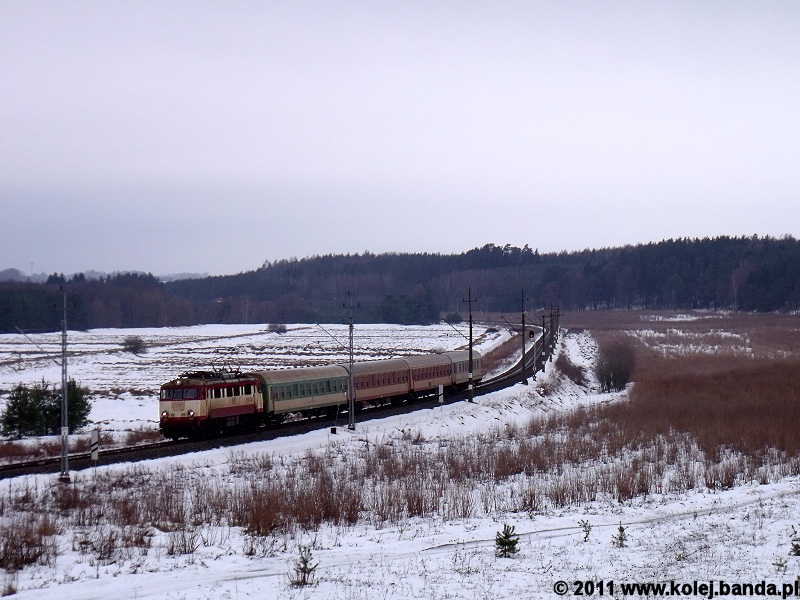 - Worowo. EP07-1036 z pociągiem TLK z Olsztyna do Szczecina zbliża się do Łobza.