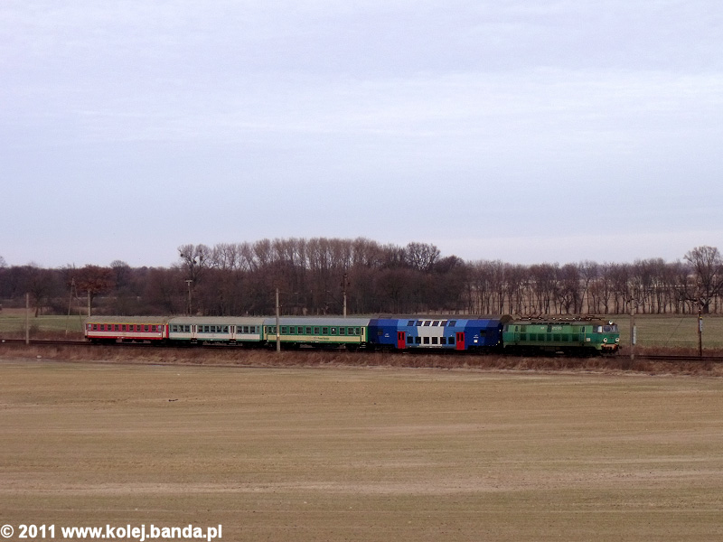 - Strzebielewo Pyrzyckie, ET22-1072 z pociągiem InterRegio ze Szczecina do Krakowa pędzi do Choszczna.