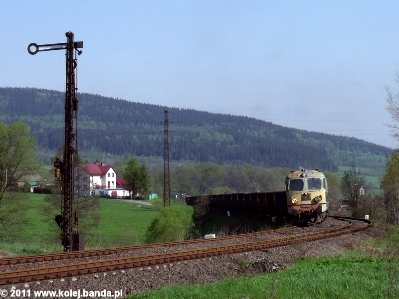 - Kamienna Góra. ST43-339 z próżnym pociągiem towarowym z Wałbrzycha zbliża się do stacji końcowej.