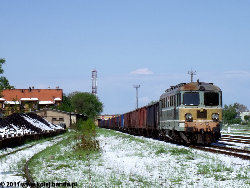 - Jawor. ST43-171 z pociągiem towarowym stoi na stacji.