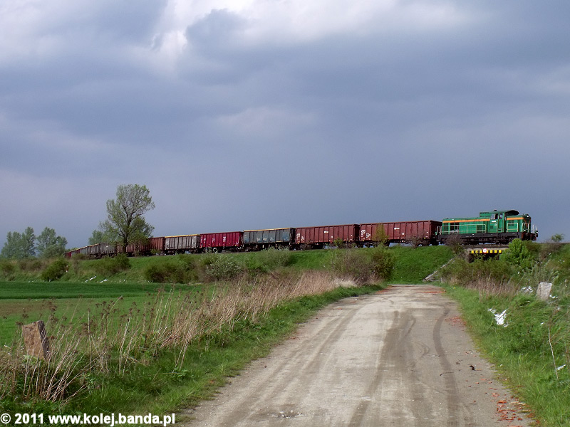- Gniewków, M62M-013 i SM42-2218 na popychu z pociągiem towarowym z Borowa zmierzają do Jawora.