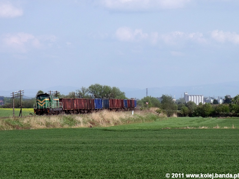 - Brodziszów, ST43-189 wraz z SM42-1117 i pociągiem towarowym zbliżają się do Ząbkowic Śląskich.