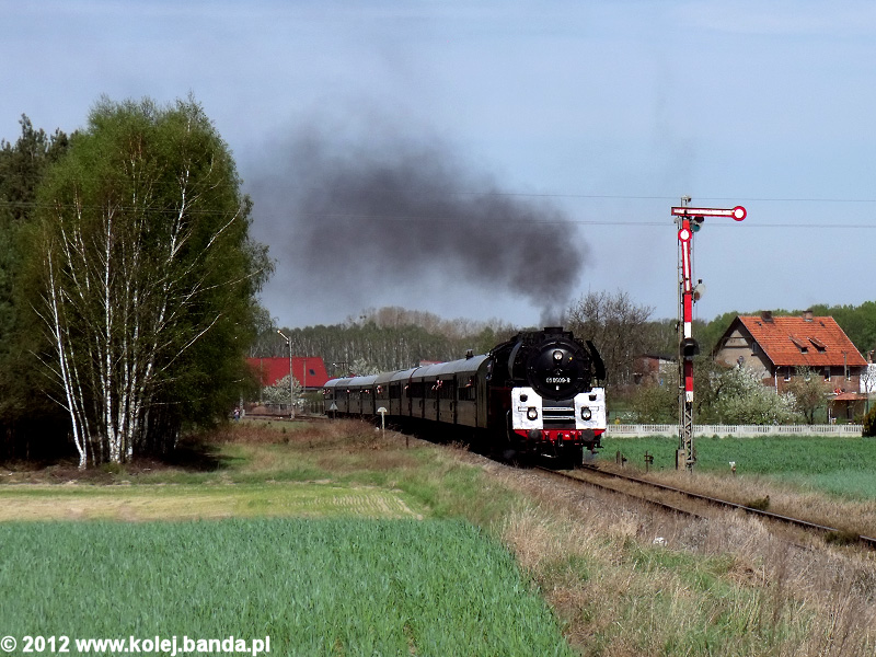 - Stefanowo, 01 0509-8 z pociągiem specjalnym z Cottbus do Wolsztyna opuszcza stację.