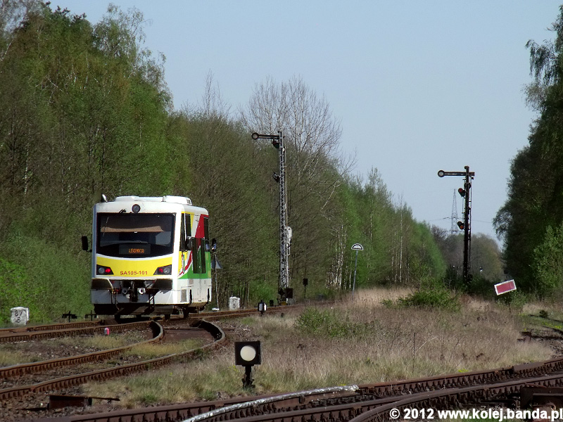 - Rokitki, SA105-101 jako pociąg REGIO z Żar do Legnicy opuszcza stację.