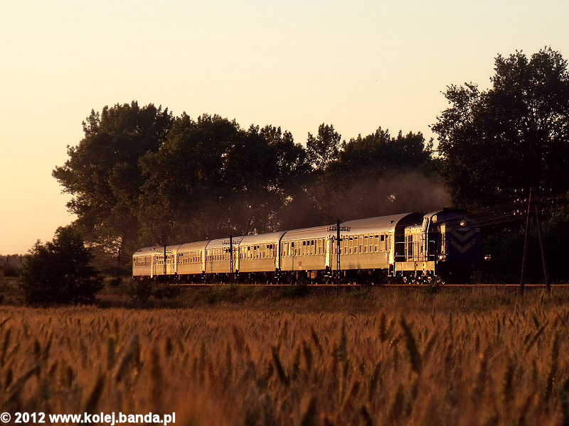 - Grębocin, SM42-058 z pociągiem TLK "Szczecinianin" z Kołobrzegu do Warszawy Wschodniej zbliża się do Płot.