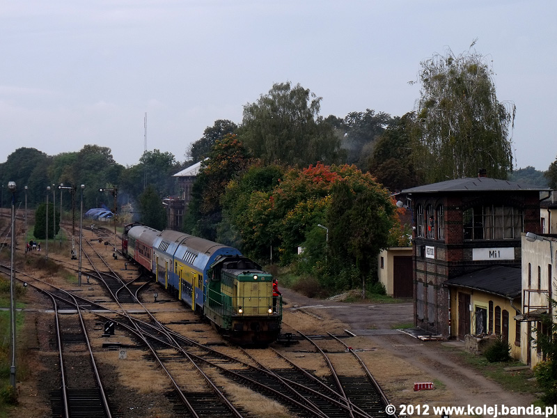 - Międzychód, SP32-204 z pociągiem specjalnym "Borowik" relacji Poznań-Sieraków opuszcza stację.