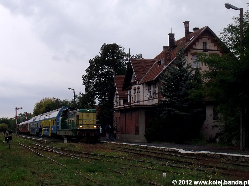 - Sieraków, SP32-204 z pociągiem specjalnym "Morena" relacji Sieraków-Międzychód-Sieraków stoi na stacji.