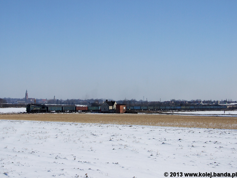 - Wschowa, ST44-1213 z pociągiem towarowym opuszcza miasto, kierując się do Głogowa.