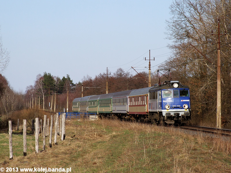 - Bystrzynka. EP07-1022 z pociągiem TLK "Rybak" relacji Białystok-Szczecin zbliża się do Świdwina.
